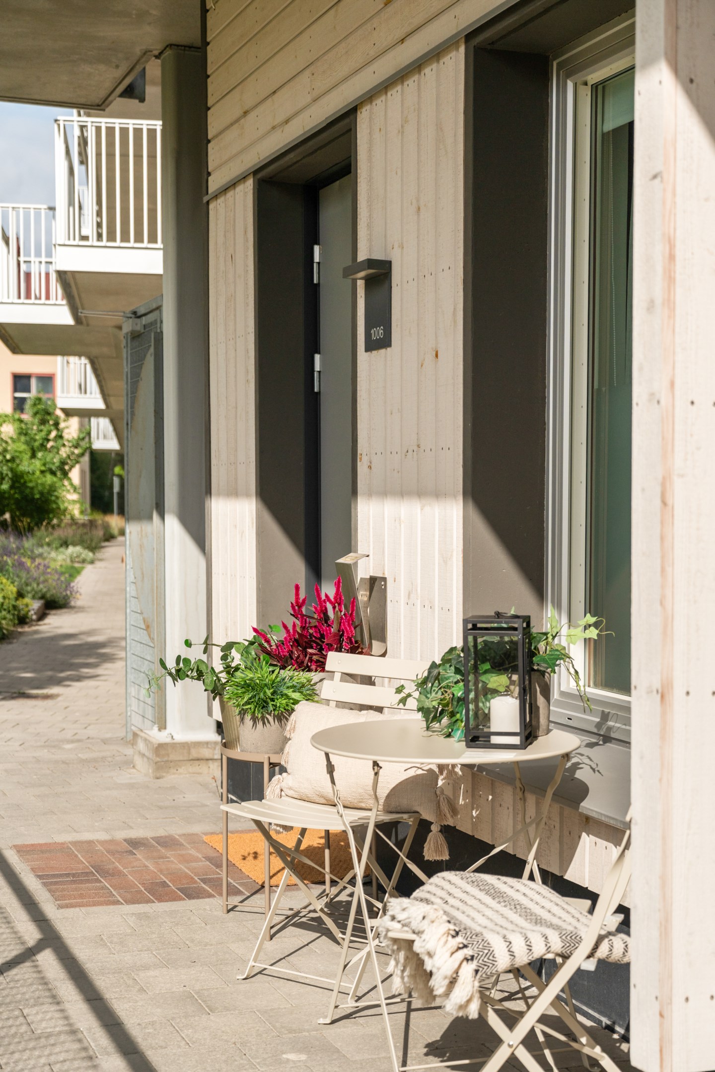 Välkomnande entré med god plats för skor och ytterkläder. Hallen är möblerbar och rymmer en garderobsvägg samt städskåp. Precis utanför ytterdörren ges plats för att avnjuta kvällssolen.