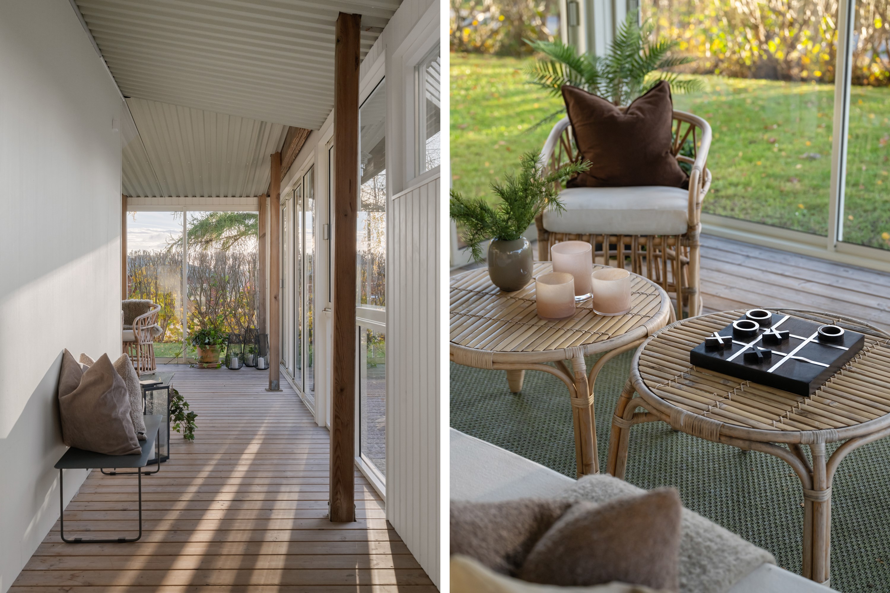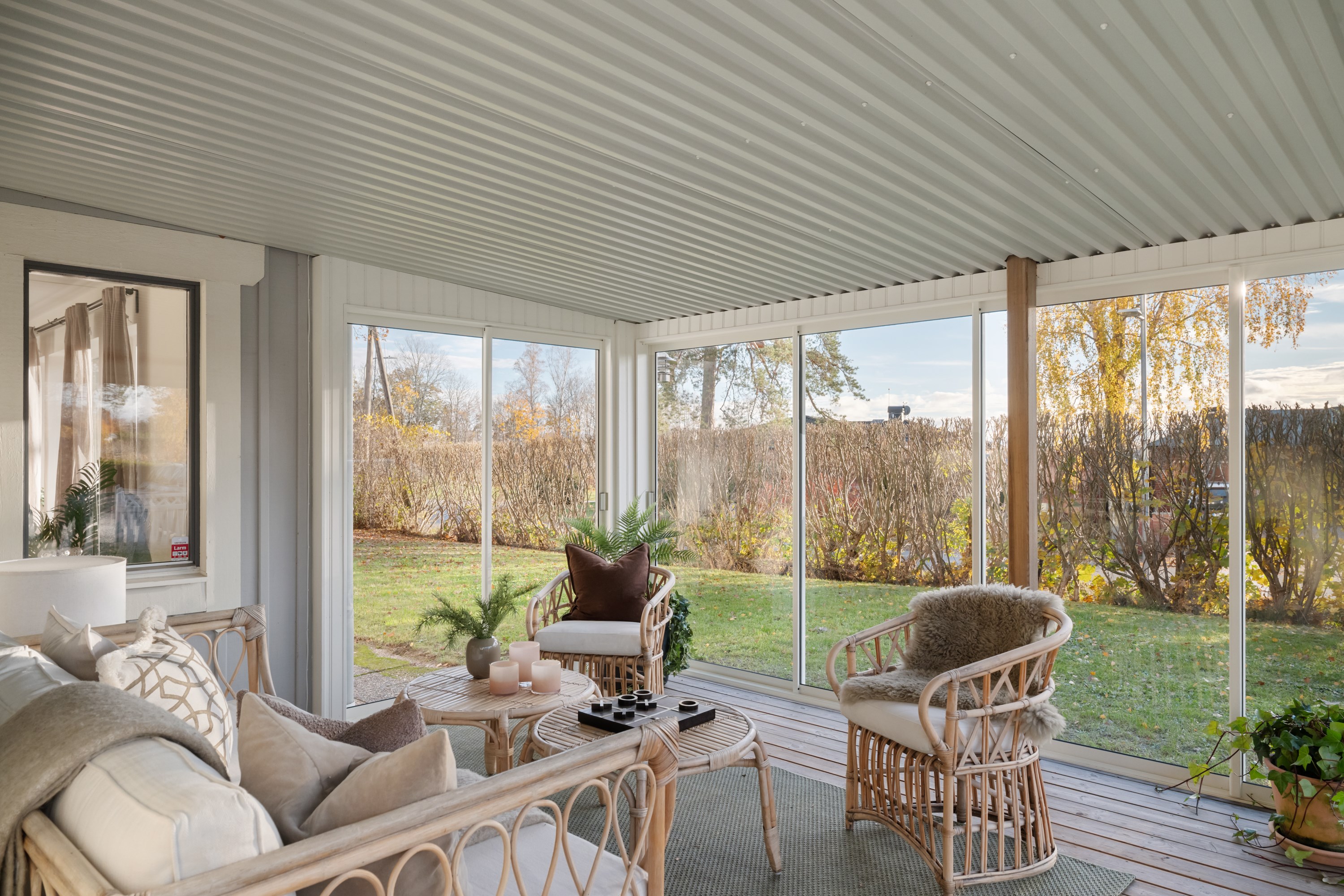 Stor altan om dryga 23 m2 med skjutdörrspartier och access till både trädgård och uppfart.