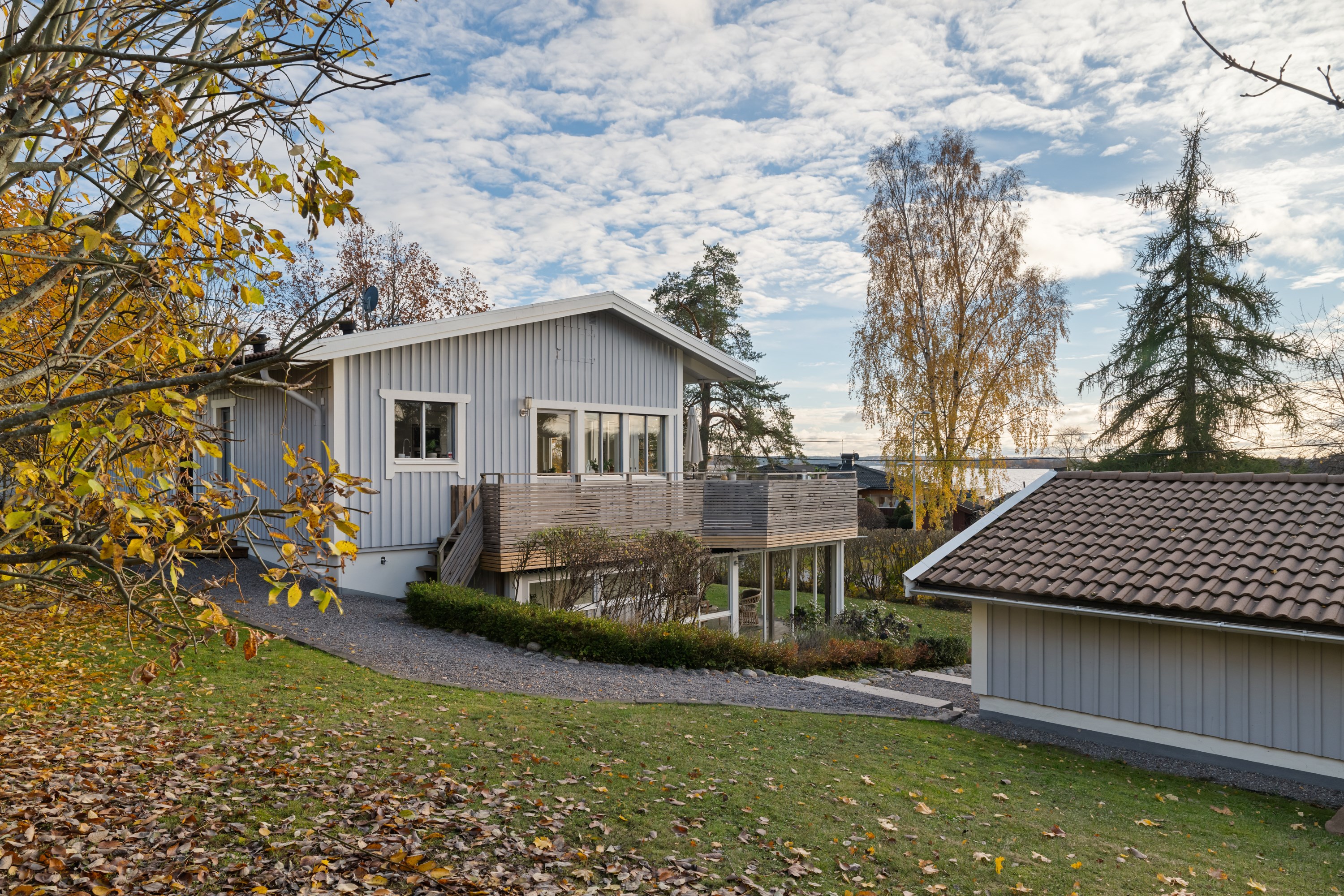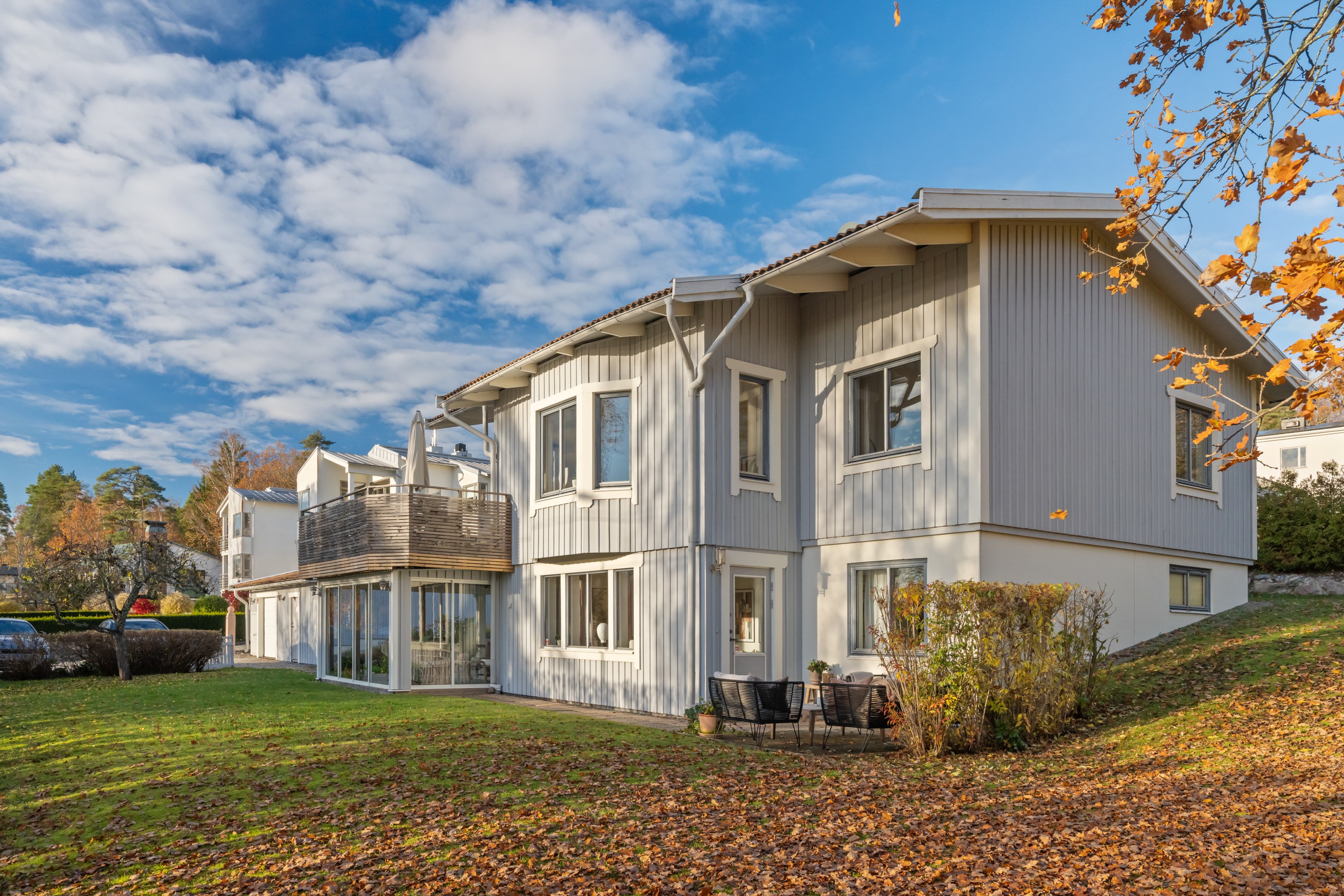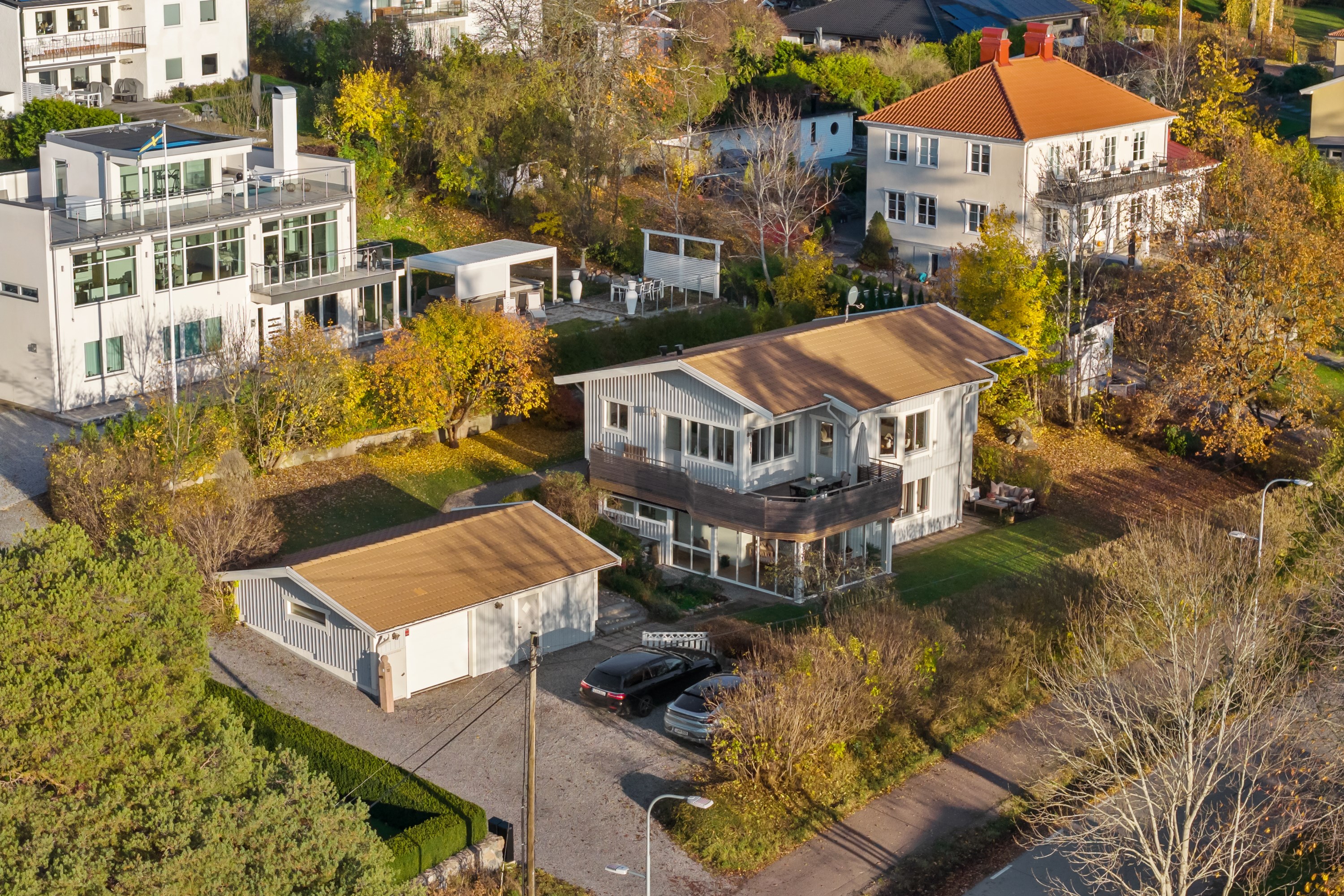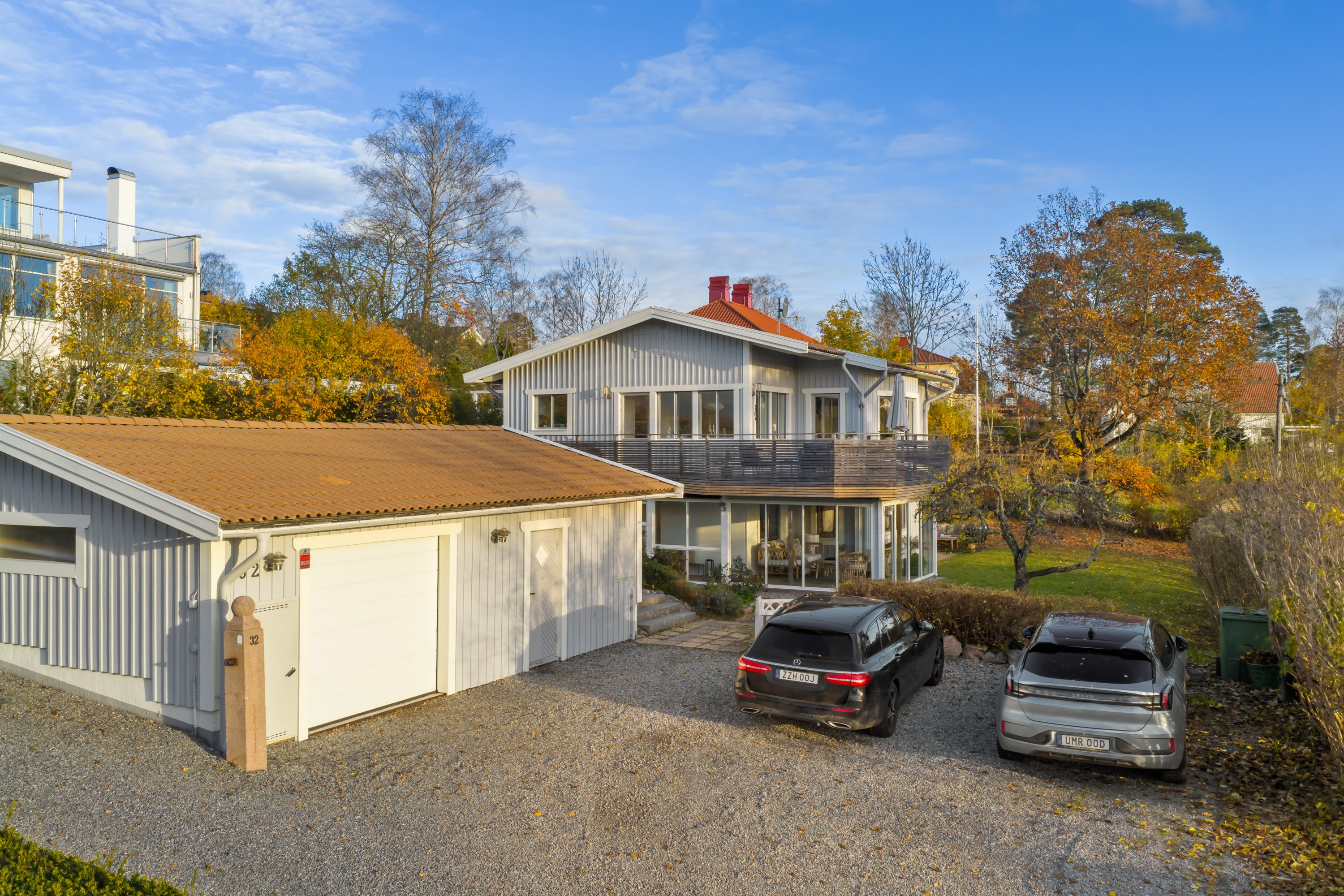 Välkommen till Drakskeppsvägen 32 - en rymlig och välplanerad tvåplansvilla om 209 kvm med havsutsikt, knappt 150 meter från strandlinjen! Bo med utmärkt solläge på en tomt om 1 020 kvm, med stort garage om 50 kvm och generös uppfart med plats för flera bilar. Huset präglas av stora fönsterpartier och rikligt med ljusinsläpp samt flera uteplatser. Köket i öppen planlösning mot vardagsrummet bjuder på 3,5 meters takhöjd och en luftig, inbjudande atmosfär. Från både kök och vardagsrum nås den generösa terrassen som löper runt huset från söder till väst – med sol hela dagen och kvällsljus över havet. Fyra sovrum, med möjlighet att skapa upp till sju, samt två stora badrum - varav det ena med bastu. Samtliga sovrum är väl tilltagna med goda förvaringsmöjligheter. På nedre plan finns ytterligare ett vardagsrum med egen uteplats och utgång till trädgården, ett biorum, tvättstuga med groventré samt en inglasad altan med skjutdörrspartier. Det stora garaget om 50 kvm rymmer både bilplats och förrådsutrymmen. Trädgården är insynsskyddad och erbjuder stora gräsytor i fyra väderstreck – en idealisk miljö för familjelivet.